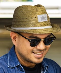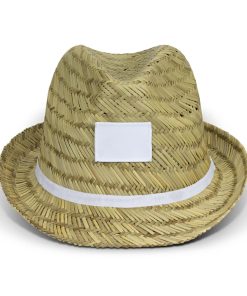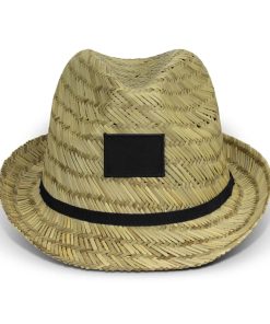 Chic Waldorf Straw Fedora with custom logo – perfect for sunny days & brand visibility. Stylish, lightweight & ribbon-adorned.