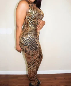 Sequined Style Sleeveless Round Neck Formal Evening Long Jumpsuit
