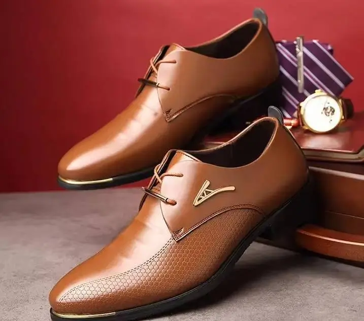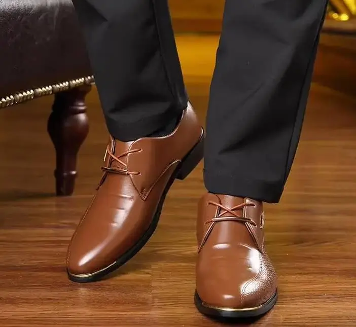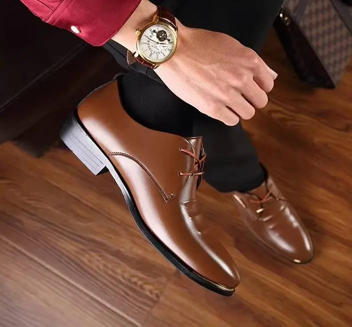 Business Style Breathable Wedding Wear-resistant Leather Lace-Up Shoes