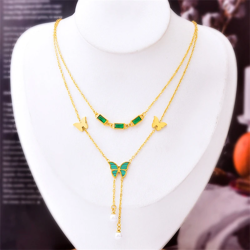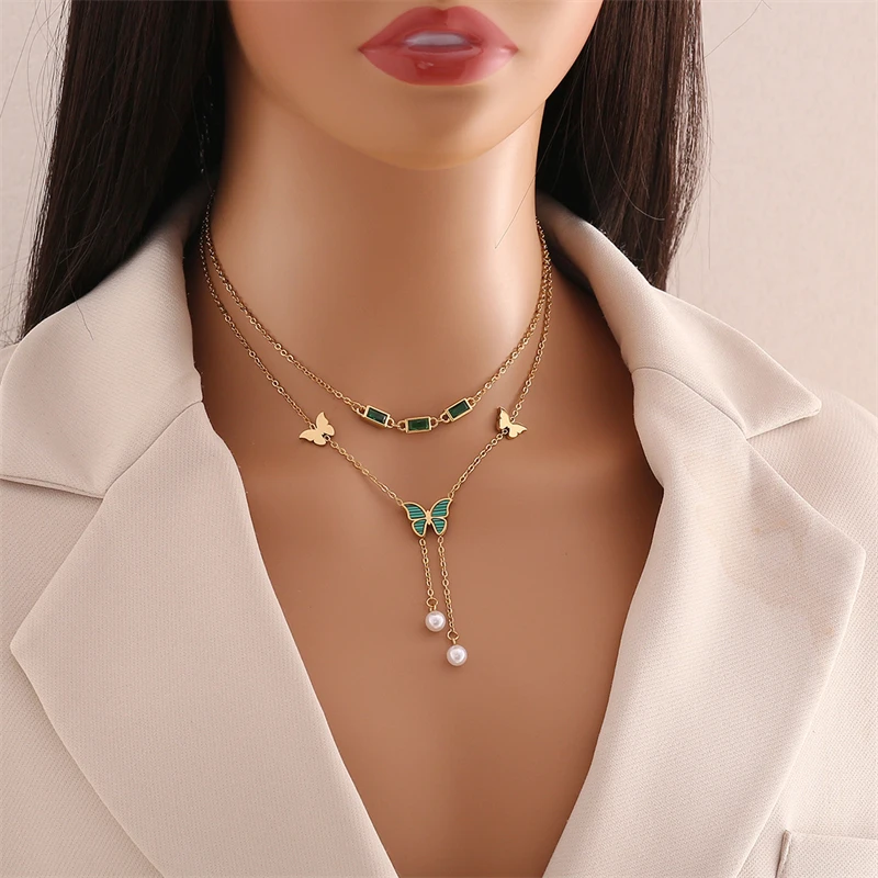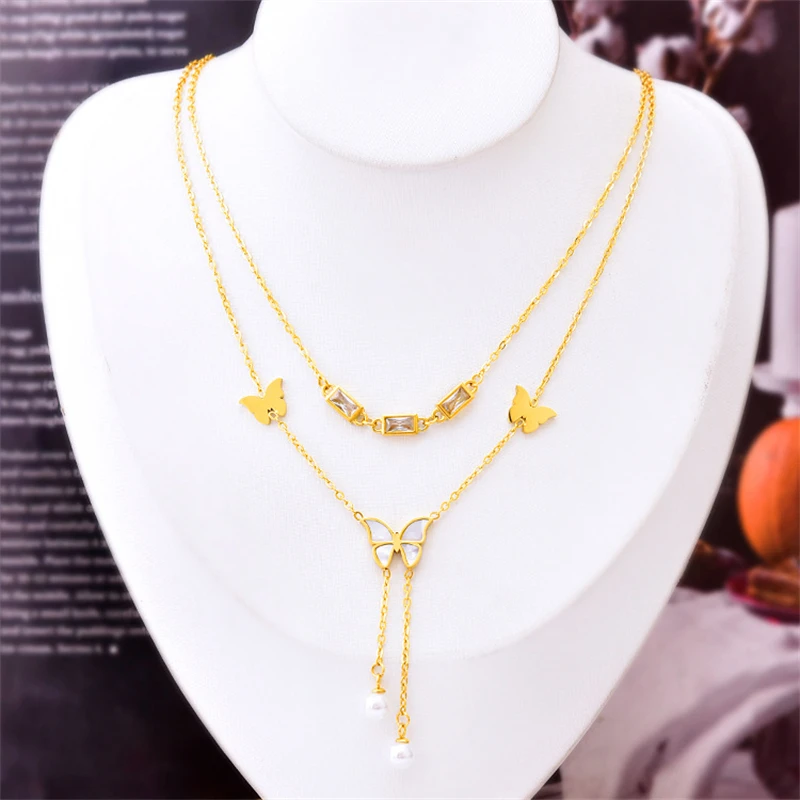 Casual Geometric Stainless Steel Natural Seashells Butterfly Pearl Charm Chain Necklaces 2Pcs