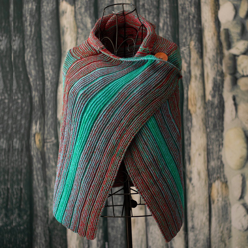 Casual Multicolor Stripes Scarves & Shawls Buttoned Crochet Wrap Pattern
