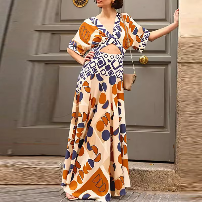Be the first to review “Casual Pleated V-neck Hollow Out Pattern Print Waist Slim Party Dress” Cancel reply