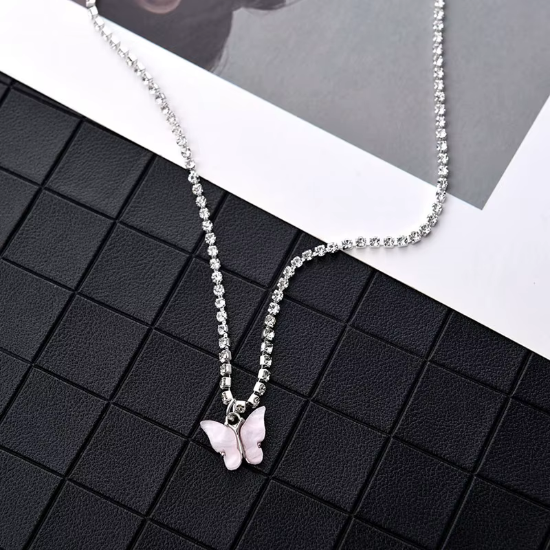 Be the first to review “Dazzling Acrylic Butterfly Rhinestone Chain Simple Clavicle Necklace” Cancel reply