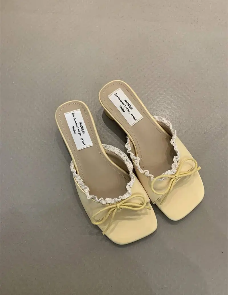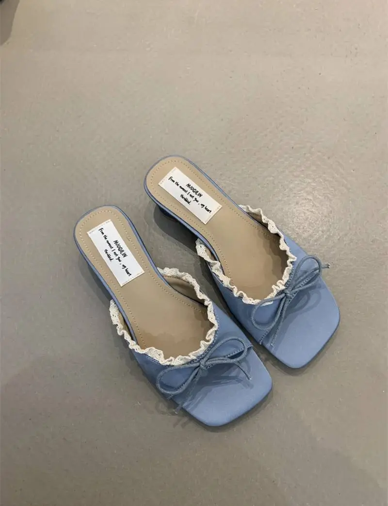 Designer Summer Butterfly-knot Lace Low Heel Slides Sandal