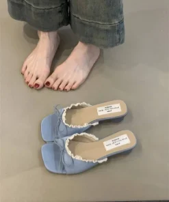 Be the first to review “Designer Summer Butterfly-knot Lace Low Heel Slides Sandal” Cancel reply