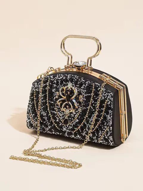 Elegant Beads Decor Mini Satchel Glitter Luxury Clutch