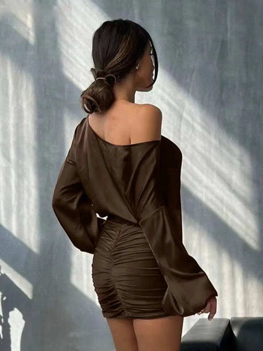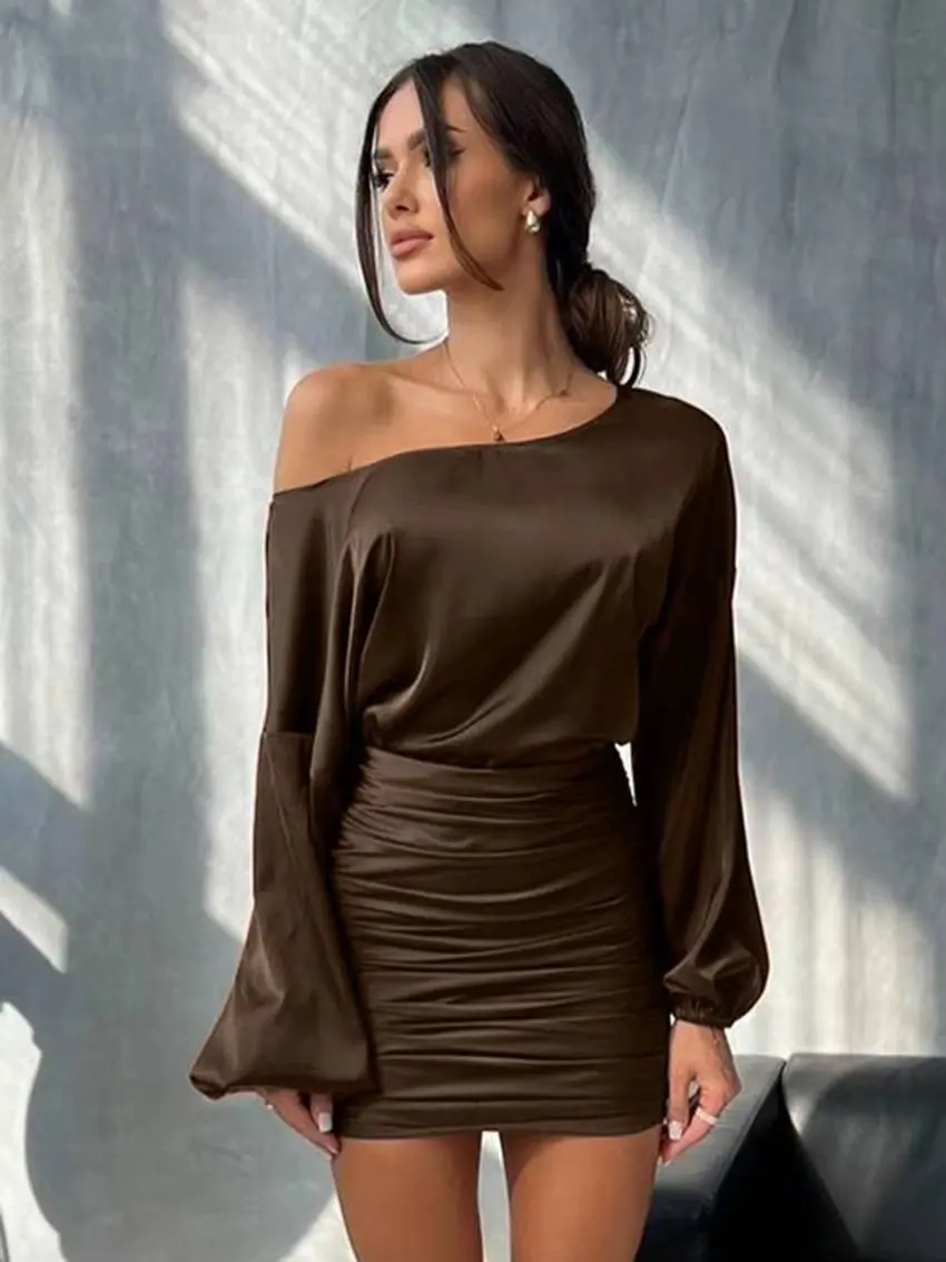 Elegant Long Sleeve Shirt With High Waist Bodycon Mini Skirt Two Pieces Set