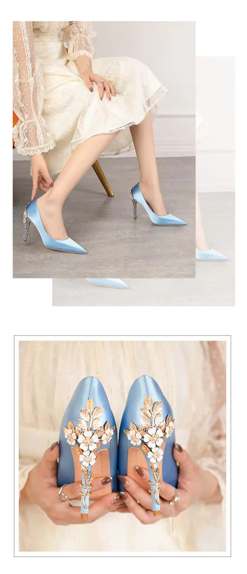 Elegant Silk Design Luxury Flower Pattern Stiletto Heeled