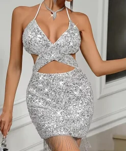 Be the first to review “Elegant V-Neck backless Spaghetti Strap sequin bodycon mini dresses” Cancel reply