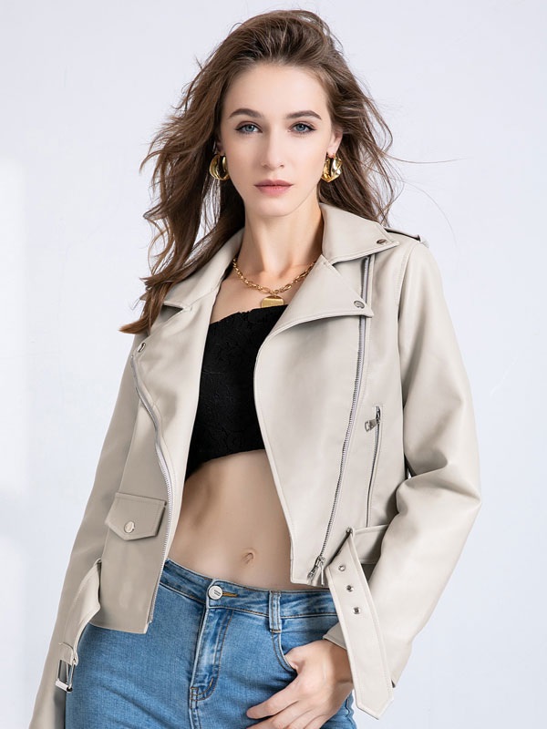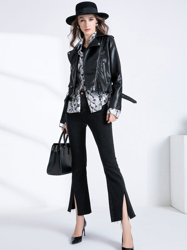 Jacket Turndown Collar High Casual PU Leather Jacket