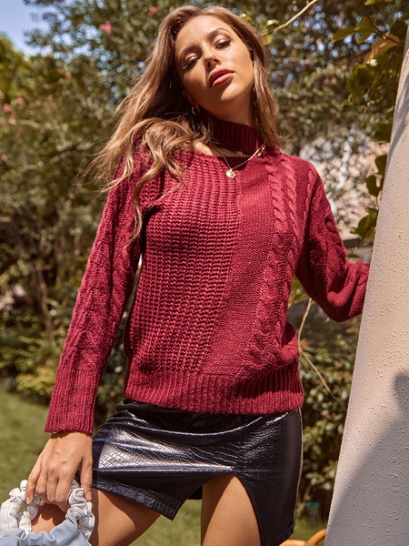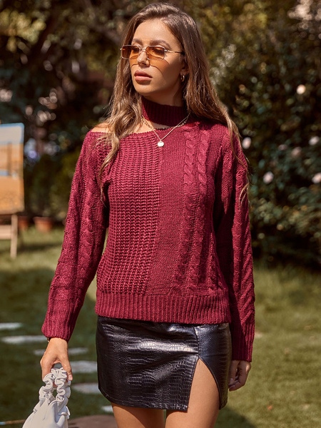 Pullovers Long Sleeves Open Shoulder Acrylic Sweaters