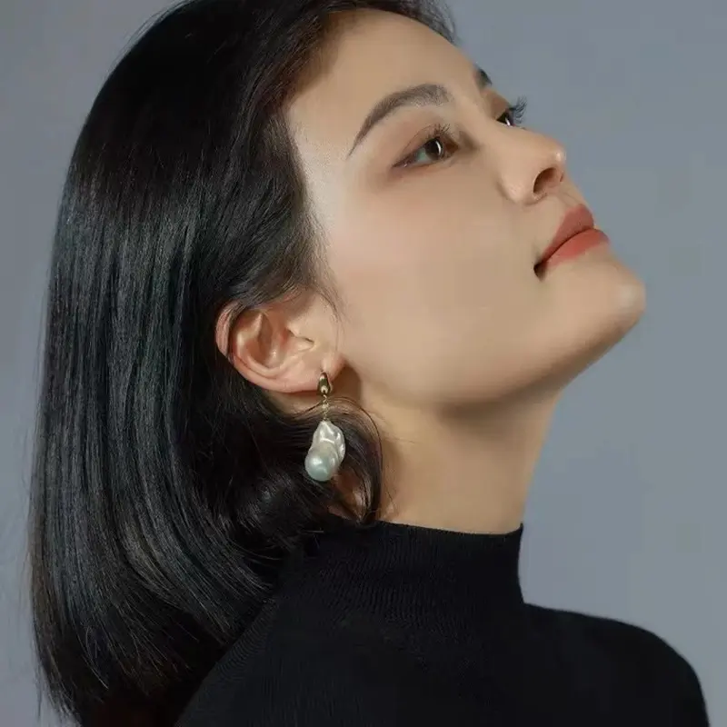 Silver Beans Style High Quality Natural Baroque Shaped Pearl Earrings Rich French Vintage Romantic Fine Jewelry