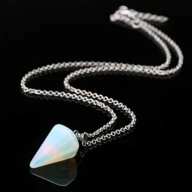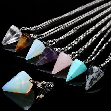 Be the first to review “Spearhead Gemstone Necklace Pendulum Crystal Style Silver Chain Link” Cancel reply