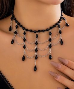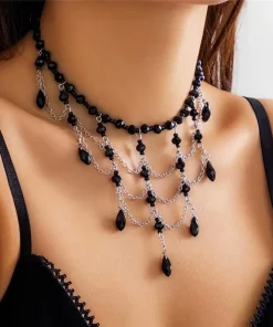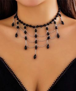 Emerald Crystal Y Shape Long Tassel Clavicle Chain Choker Necklace
