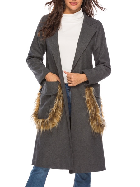 Turndown Collar Long Sleeve Pockets Coats