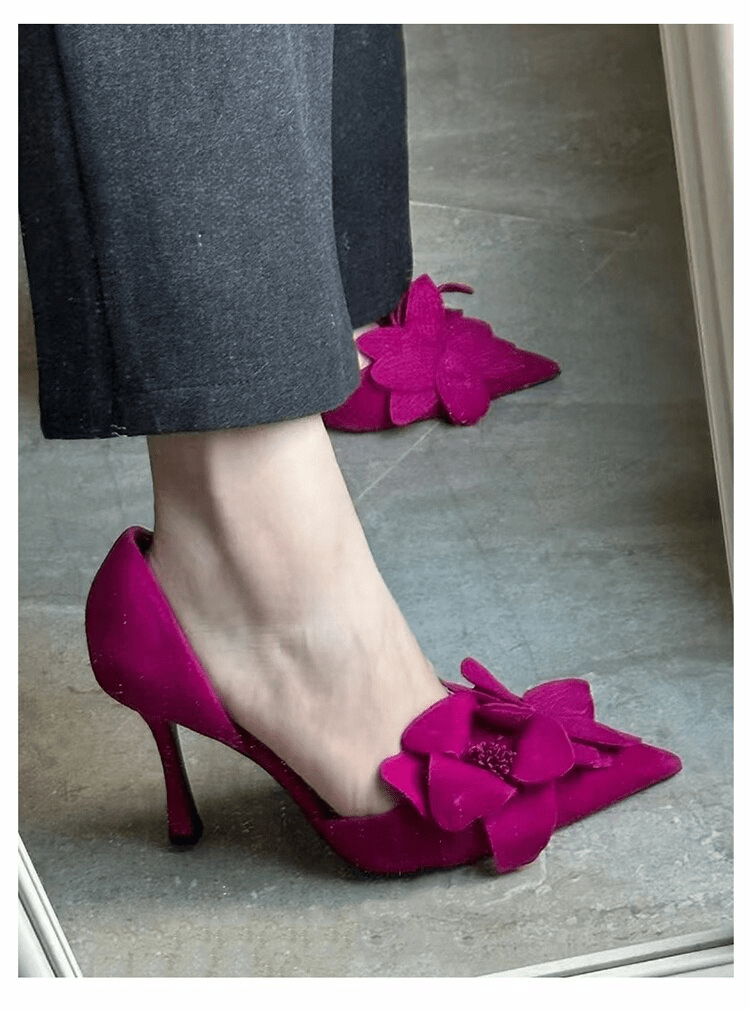 Women’s Flower High Heels Single Shoes Sexy Red Black Pumps Summer 2023 Designer New Party Shoes Dress Wedding Stiletto Zapatos