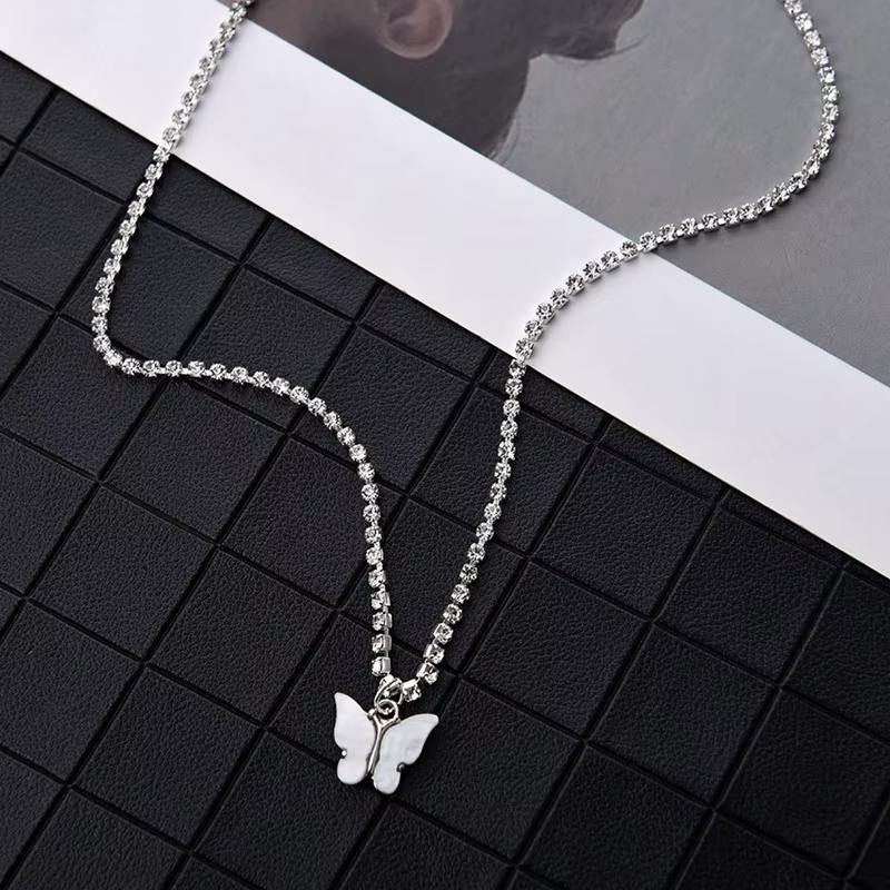 Dazzling Acrylic Butterfly Rhinestone Chain Simple Clavicle Necklace