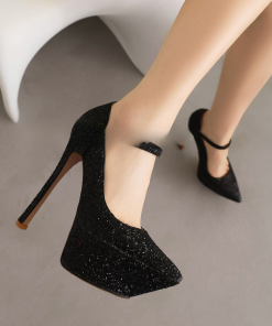 Bling Bling Platform High Heels Rhinestone Crystal Women Pumps The One Word Buckle Stiletto