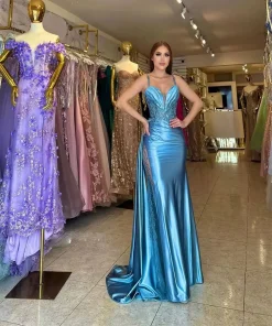 Elegant Side Split Bateau Neck Applique Zipper Back Wedding Guest Long Mother of the Bride Dresses